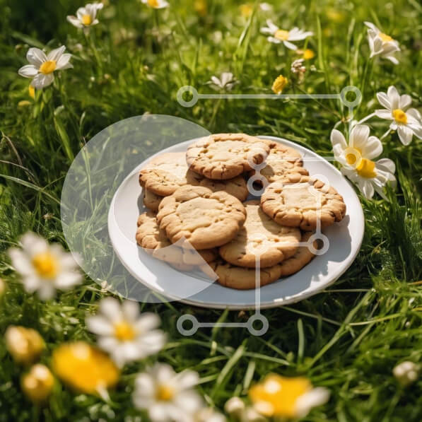 Intra Συλλεκτικό Ξύλινο Παζλ Plywood 4mm – Πιάτο με μπισκότα σε μαργαρίτες σε ένα χορταριασμένο χωράφι Σε Ξύλινο Κουτί – Διαστάσεις: 10×10 cm – 25 κομμάτια