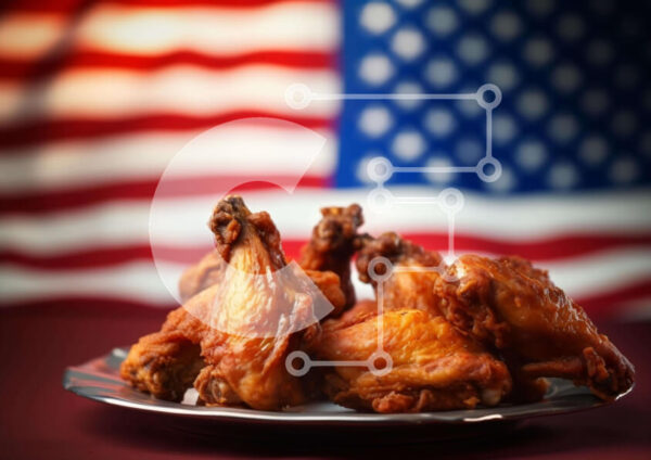Intra Συλλεκτικό Ξύλινο Παζλ Plywood 4mm – Πιάτο με τηγανητές φτερούγες κοτόπουλου με την αμερικανική σημαία στο φόντο Σε Ξύλινο Κουτί – Διαστάσεις: 10×10 cm – 25 κομμάτια