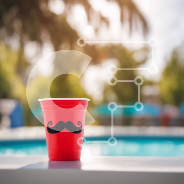 Intra Συλλεκτικό Ξύλινο Παζλ Plywood 4mm – Πλαστικό κύπελλο κόκκινο μουστάκι σε τραπέζι δίπλα στην πισίνα Σε Ξύλινο Κουτί – Διαστάσεις Puzzle: 10×10 cm – 25 κομμάτια