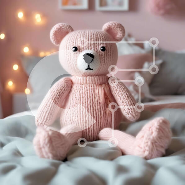 Intra Συλλεκτικό Ξύλινο Παζλ Plywood 4mm – Πλεκτό ροζ αρκουδάκι στο κρεβάτι Σε Ξύλινο Κουτί – Διαστάσεις: 10×10 cm – 25 κομμάτια