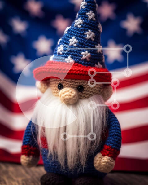 Intra Συλλεκτικό Ξύλινο Παζλ Plywood 4mm – Πλεκτό Gnome μπροστά από την αμερικανική σημαία Σε Ξύλινο Κουτί – Διαστάσεις: 10×10 cm – 25 κομμάτια
