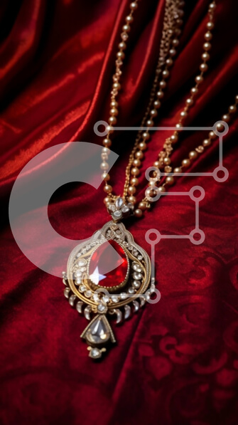 Intra Συλλεκτικό Ξύλινο Παζλ Plywood 4mm – Πολυτελές και κομψό κόκκινο μενταγιόν πολύτιμων λίθων σε κόκκινο μεταξωτό ύφασμα Σε Ξύλινο Κουτί – Διαστάσεις Puzzle: 10×10 cm – 25 κομμάτια
