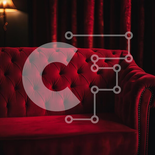 Intra Συλλεκτικό Ξύλινο Παζλ Plywood 4mm – Πολυτελής κόκκινος βελούδινος καναπές σε κομψό σκηνικό Σε Ξύλινο Κουτί – Διαστάσεις Puzzle: 10×10 cm – 25 κομμάτια