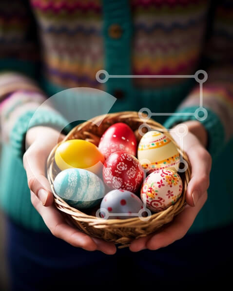 Intra Συλλεκτικό Ξύλινο Παζλ Plywood 4mm – Πολύχρωμα Πασχαλινά αυγά που κρατά γυναίκα Σε Ξύλινο Κουτί – Διαστάσεις: 10×10 cm – 25 κομμάτια