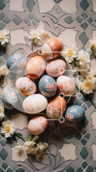 Intra Συλλεκτικό Ξύλινο Παζλ Plywood 4mm – Πολύχρωμα Πασχαλινά αυγά και λευκά λουλούδια σε ένα μπολ στο δάπεδο με πλακάκια Σε Ξύλινο Κουτί – Διαστάσεις: 10×10 cm – 25 κομμάτια