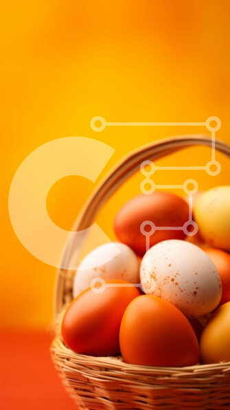 Intra Συλλεκτικό Ξύλινο Παζλ Plywood 4mm – Πολύχρωμα Πασχαλινά αυγά στο καλάθι σε πορτοκαλί φόντο Σε Ξύλινο Κουτί – Διαστάσεις: 10×10 cm – 25 κομμάτια