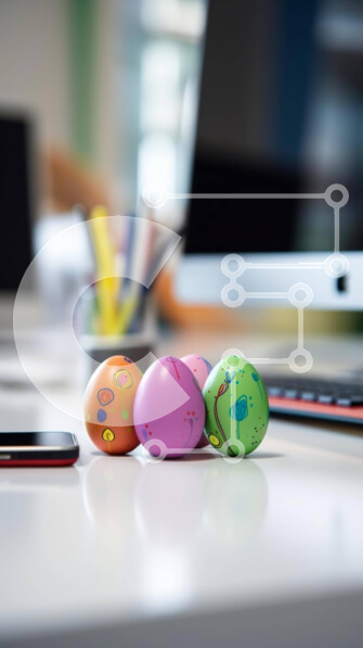 Intra Συλλεκτικό Ξύλινο Παζλ Plywood 4mm – Πολύχρωμα Πασχαλινά αυγά και κινητό τηλέφωνο στο λευκό τραπέζι Σε Ξύλινο Κουτί – Διαστάσεις: 10×10 cm – 25 κομμάτια