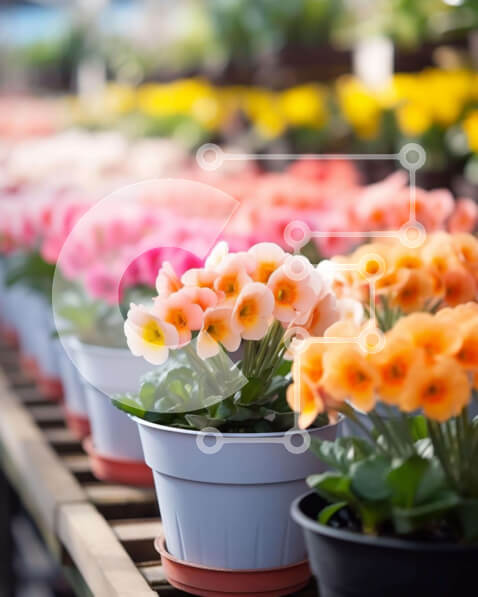 Intra Συλλεκτικό Ξύλινο Παζλ Plywood 4mm – Πολύχρωμα λουλούδια σε γλάστρες στην αγορά λουλουδιών Σε Ξύλινο Κουτί – Διαστάσεις: 10×10 cm – 25 κομμάτια