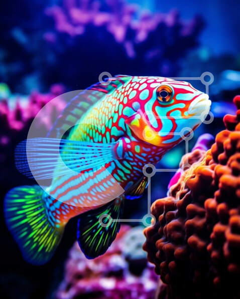 Intra Συλλεκτικό Ξύλινο Παζλ Plywood 4mm – Πολύχρωμα ψάρια που κολυμπούν ανάμεσα σε κοράλλια σε ένα ενυδρείο Σε Ξύλινο Κουτί – Διαστάσεις: 10×10 cm – 25 κομμάτια