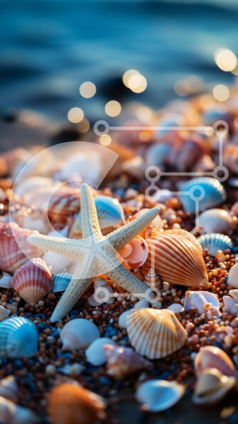 Intra Συλλεκτικό Ξύλινο Παζλ Plywood 4mm – Πολύχρωμα κοχύλια στην αμμώδη παραλία στο ηλιοβασίλεμα Σε Ξύλινο Κουτί – Διαστάσεις: 10×10 cm – 25 κομμάτια