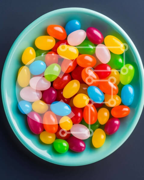 Intra Συλλεκτικό Ξύλινο Παζλ Plywood 4mm – Πολύχρωμα φασόλια ζελέ σε μπλε μπολ Σε Ξύλινο Κουτί – Διαστάσεις: 10×10 cm – 25 κομμάτια