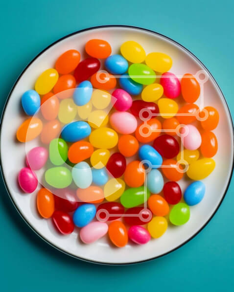 Intra Συλλεκτικό Ξύλινο Παζλ Plywood 4mm – Πολύχρωμα φασόλια ζελέ σε λευκό πιάτο Σε Ξύλινο Κουτί – Διαστάσεις: 10×10 cm – 25 κομμάτια