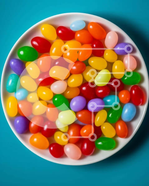 Intra Συλλεκτικό Ξύλινο Παζλ Plywood 4mm – Πολύχρωμα ζελέ φασόλια σε λευκό μπολ σε πορτοκαλί φόντο Σε Ξύλινο Κουτί – Διαστάσεις: 10×10 cm – 25 κομμάτια