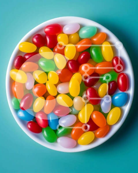 Intra Συλλεκτικό Ξύλινο Παζλ Plywood 4mm – Πολύχρωμα φασόλια ζελέ σε λευκό μπολ Σε Ξύλινο Κουτί – Διαστάσεις: 10×10 cm – 25 κομμάτια