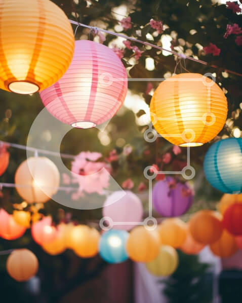Intra Συλλεκτικό Ξύλινο Παζλ Plywood 4mm – Πολύχρωμα χάρτινα φανάρια που κρέμονται σε εξωτερικούς χώρους Σε Ξύλινο Κουτί – Διαστάσεις Puzzle: 10×10 cm – 25 κομμάτια