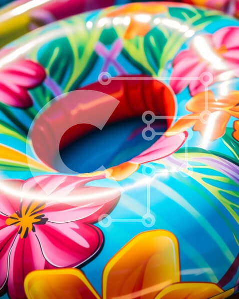 Intra Συλλεκτικό Ξύλινο Παζλ Plywood 4mm – Πολύχρωμα φουσκωτά δαχτυλίδια πισίνας με λουλούδια Σε Ξύλινο Κουτί – Διαστάσεις Puzzle: 10×10 cm – 25 κομμάτια