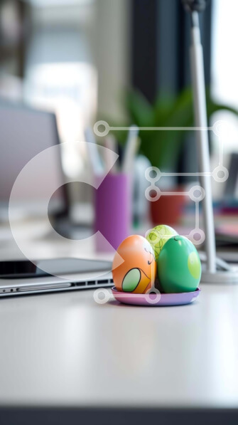 Intra Συλλεκτικό Ξύλινο Παζλ Plywood 4mm – Πολύχρωμα Πασχαλινά αυγά στο γραφείο με φορητό υπολογιστή Σε Ξύλινο Κουτί – Διαστάσεις Puzzle: 10×10 cm – 25 κομμάτια