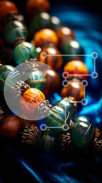 Intra Συλλεκτικό Ξύλινο Παζλ Plywood 4mm – Πολύχρωμα κολιέ με χάντρες σε μπλε ύφασμα Σε Ξύλινο Κουτί – Διαστάσεις Puzzle: 10×10 cm – 25 κομμάτια