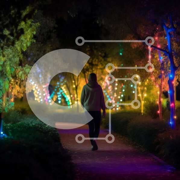 Intra Συλλεκτικό Ξύλινο Παζλ Plywood 4mm – Πολύχρωμα φώτα που φωτίζουν το άτομο που περπατά στο μονοπάτι Σε Ξύλινο Κουτί – Διαστάσεις Puzzle: 10×10 cm – 25 κομμάτια
