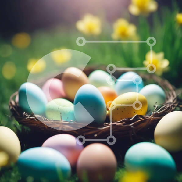Intra Συλλεκτικό Ξύλινο Παζλ Plywood 4mm – Πολύχρωμα Πασχαλινά αυγά σε ένα καλάθι στο γρασίδι Σε Ξύλινο Κουτί – Διαστάσεις: 10×10 cm – 25 κομμάτια