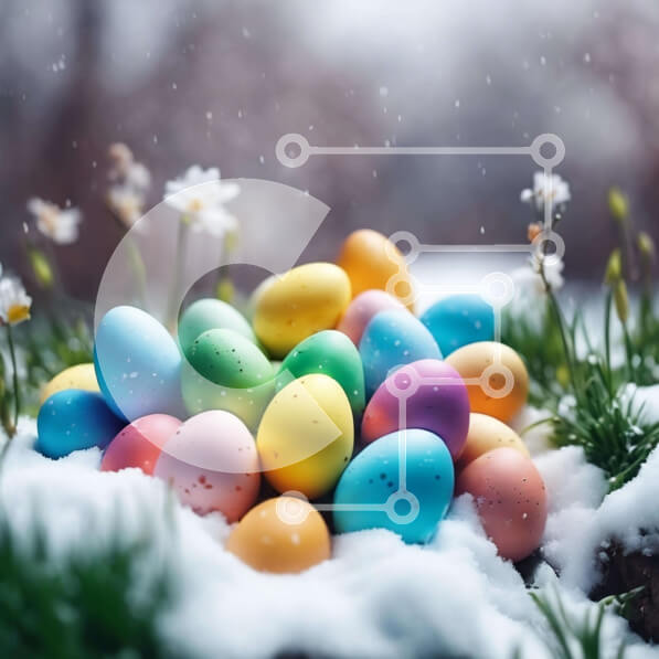 Intra Συλλεκτικό Ξύλινο Παζλ Plywood 4mm – Πολύχρωμα Πασχαλινά αυγά στο χιόνι με λουλούδια και πράσινο γρασίδι Σε Ξύλινο Κουτί – Διαστάσεις: 10×10 cm – 25 κομμάτια