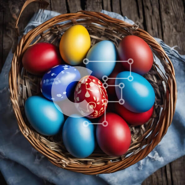 Intra Συλλεκτικό Ξύλινο Παζλ Plywood 4mm – Πολύχρωμα Πασχαλινά αυγά στο καλάθι σε ξύλινο τραπέζι Σε Ξύλινο Κουτί – Διαστάσεις: 10×10 cm – 25 κομμάτια