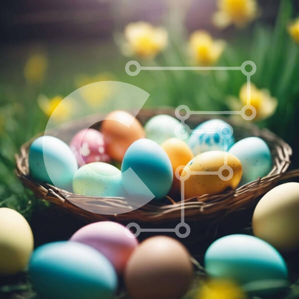 Intra Συλλεκτικό Ξύλινο Παζλ Plywood 4mm – Πολύχρωμα Πασχαλινά αυγά στο γρασίδι με τους νάρκισσους Σε Ξύλινο Κουτί – Διαστάσεις: 10×10 cm – 25 κομμάτια