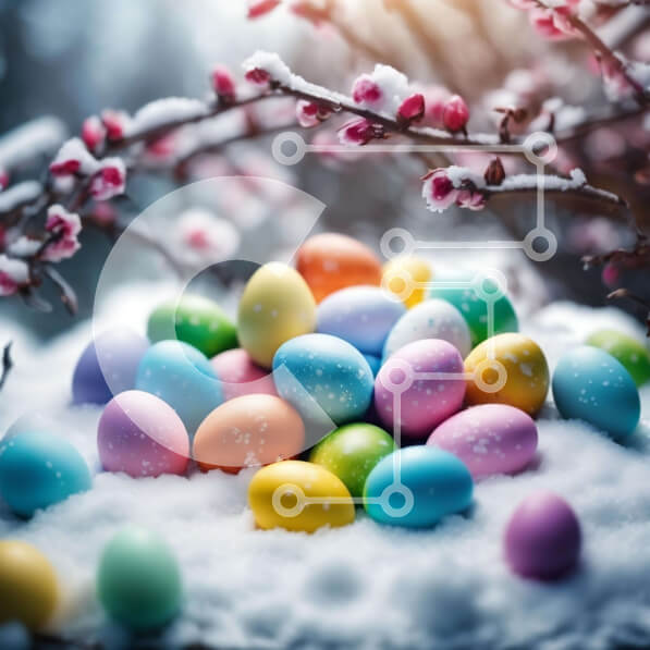 Intra Συλλεκτικό Ξύλινο Παζλ Plywood 4mm – Πολύχρωμα Πασχαλινά αυγά στο χιόνι με άνθη Σε Ξύλινο Κουτί – Διαστάσεις: 10×10 cm – 25 κομμάτια