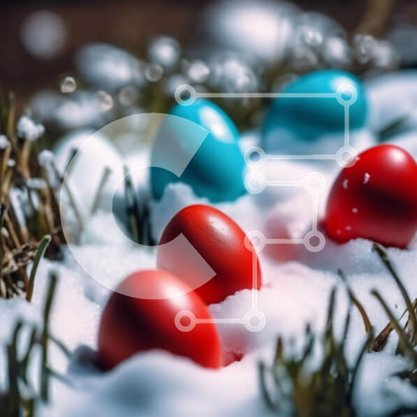 Intra Συλλεκτικό Ξύλινο Παζλ Plywood 4mm – Πολύχρωμα Πασχαλινά αυγά στο χιόνι με γρασίδι και λουλούδια Σε Ξύλινο Κουτί – Διαστάσεις: 10×10 cm – 25 κομμάτια
