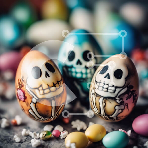 Intra Συλλεκτικό Ξύλινο Παζλ Plywood 4mm – Πολύχρωμα Πασχαλινά αυγά με διακοσμήσεις σκελετού και κρανίου Σε Ξύλινο Κουτί – Διαστάσεις: 10×10 cm – 25 κομμάτια