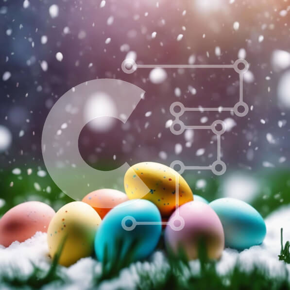 Intra Συλλεκτικό Ξύλινο Παζλ Plywood 4mm – Πολύχρωμα Πασχαλινά αυγά στο γρασίδι με το χιόνι που πέφτει Σε Ξύλινο Κουτί – Διαστάσεις: 10×10 cm – 25 κομμάτια