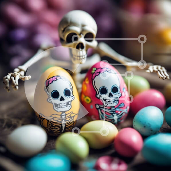 Intra Συλλεκτικό Ξύλινο Παζλ Plywood 4mm – Πολύχρωμα Πασχαλινά αυγά με ζωγραφιές σκελετών Σε Ξύλινο Κουτί – Διαστάσεις: 10×10 cm – 25 κομμάτια