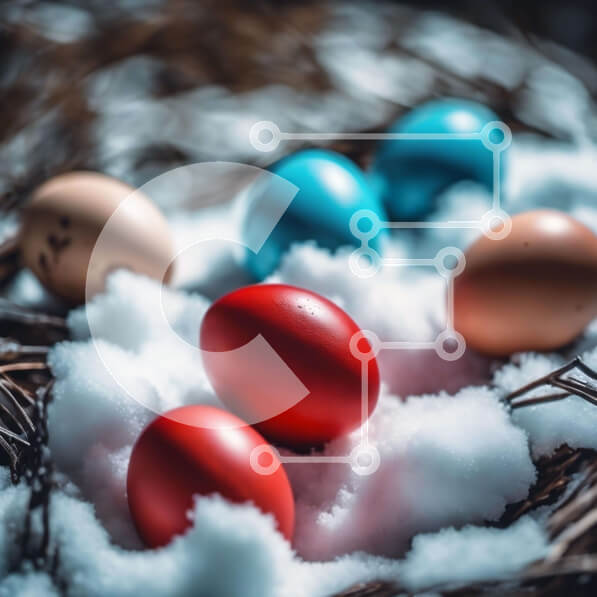 Intra Συλλεκτικό Ξύλινο Παζλ Plywood 4mm – Πολύχρωμα Πασχαλινά αυγά σε μια χιονισμένη φωλιά Σε Ξύλινο Κουτί – Διαστάσεις: 10×10 cm – 25 κομμάτια