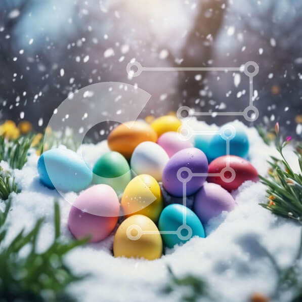 Intra Συλλεκτικό Ξύλινο Παζλ Plywood 4mm – Πολύχρωμα Πασχαλινά αυγά στο χιόνι – χαρούμενη γιορτή διακοπών Σε Ξύλινο Κουτί – Διαστάσεις: 10×10 cm – 25 κομμάτια