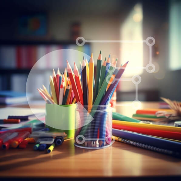 Intra Συλλεκτικό Ξύλινο Παζλ Plywood 4mm – Πολύχρωμα σχολικά είδη σε ξύλινο γραφείο Σε Ξύλινο Κουτί – Διαστάσεις Puzzle: 10×10 cm – 25 κομμάτια