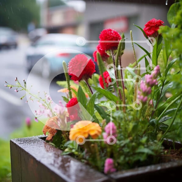 Intra Συλλεκτικό Ξύλινο Παζλ Plywood 4mm – Πολύχρωμα λουλούδια Σε Ξύλινο Κουτί με βροχή και αυτοκίνητο που περνάει Σε Ξύλινο Κουτί – Διαστάσεις: 10×10 cm – 25 κομμάτια