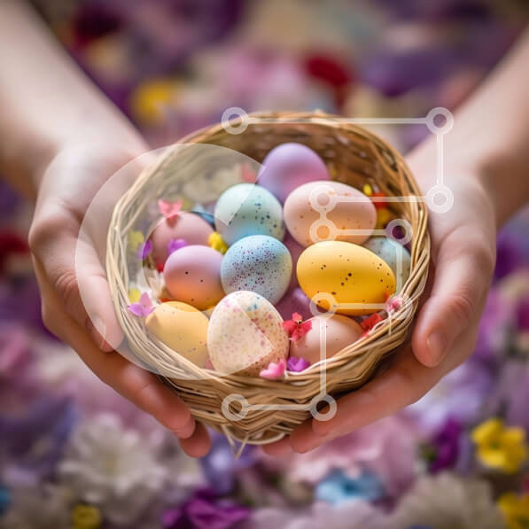 Intra Συλλεκτικό Ξύλινο Παζλ Plywood 4mm – Πολύχρωμα Πασχαλινά αυγά σε ένα ψάθινο καλάθι – κοντινό πλάνο Σε Ξύλινο Κουτί – Διαστάσεις: 10×10 cm – 25 κομμάτια