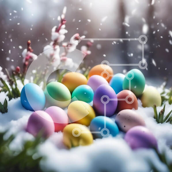 Intra Συλλεκτικό Ξύλινο Παζλ Plywood 4mm – Πολύχρωμα Πασχαλινά αυγά στο χιόνι με λουλούδια και κλαδιά Σε Ξύλινο Κουτί – Διαστάσεις Puzzle: 10×10 cm – 25 κομμάτια