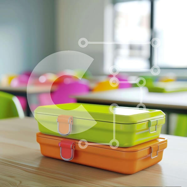 Intra Συλλεκτικό Ξύλινο Παζλ Plywood 4mm – Πολύχρωμα κουτιά μεσημεριανού γεύματος σε μια άδεια τάξη Σε Ξύλινο Κουτί – Διαστάσεις Puzzle: 10×10 cm – 25 κομμάτια