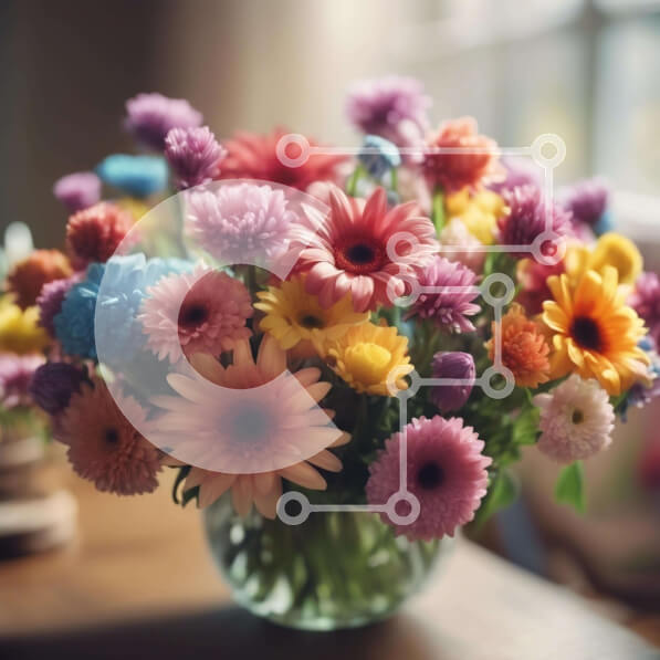 Intra Συλλεκτικό Ξύλινο Παζλ Plywood 4mm – Πολύχρωμα λουλούδια σε γυάλινο βάζο σε ξύλινο τραπέζι Σε Ξύλινο Κουτί – Διαστάσεις: 10×10 cm – 25 κομμάτια