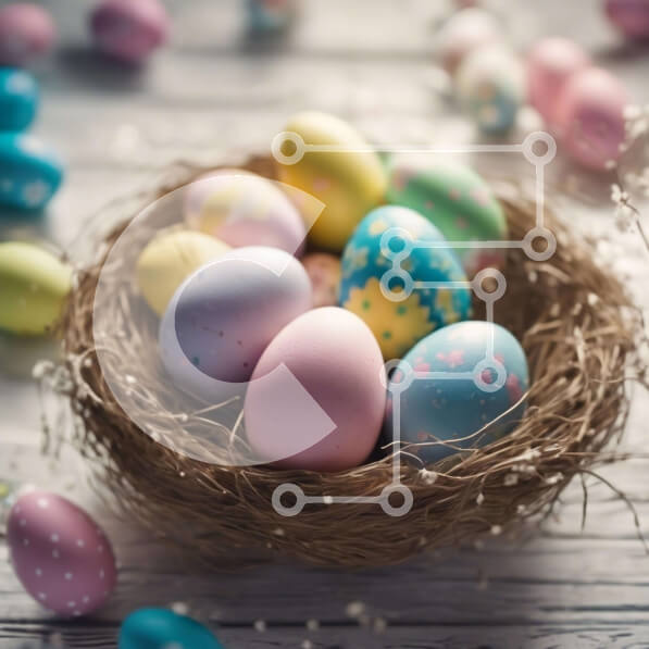 Intra Συλλεκτικό Ξύλινο Παζλ Plywood 4mm – Πολύχρωμα Πασχαλινά αυγά σε μια φωλιά Σε Ξύλινο Κουτί – Διαστάσεις Puzzle: 10×10 cm – 25 κομμάτια