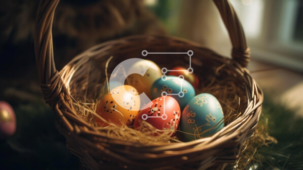 Intra Συλλεκτικό Ξύλινο Παζλ Plywood 4mm – Πολύχρωμα Πασχαλινά αυγά σε ένα διακοσμητικό καλάθι στο γρασίδι Σε Ξύλινο Κουτί – Διαστάσεις: 10×10 cm – 25 κομμάτια