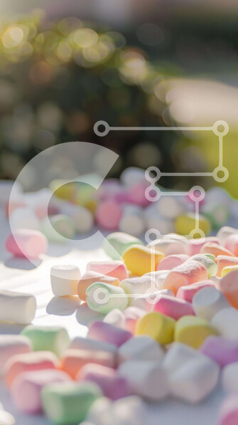 Intra Συλλεκτικό Ξύλινο Παζλ Plywood 4mm – Πολύχρωμα Marshmallows σε λευκό τραπέζι Σε Ξύλινο Κουτί – Διαστάσεις Puzzle: 10×10 cm – 25 κομμάτια
