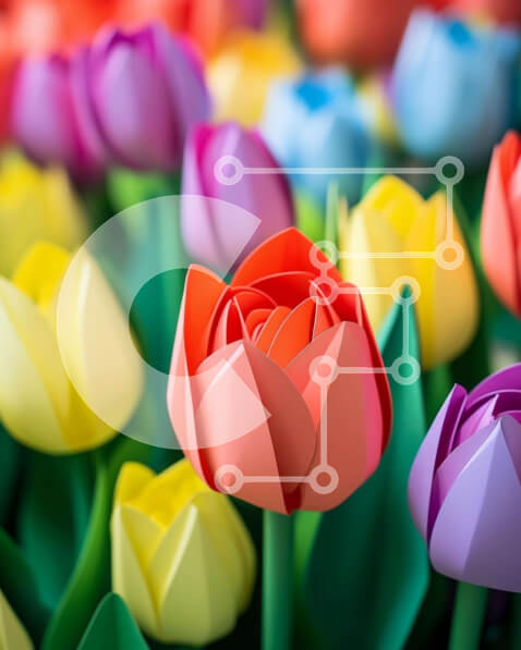Intra Συλλεκτικό Ξύλινο Παζλ Plywood 4mm – Πολύχρωμες τουλίπες Origami στο χωράφι Σε Ξύλινο Κουτί – Διαστάσεις: 10×10 cm – 25 κομμάτια