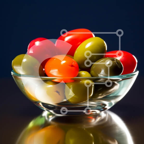 Intra Συλλεκτικό Ξύλινο Παζλ Plywood 4mm – Πολύχρωμες ελιές σε γυάλινο μπολ Σε Ξύλινο Κουτί – Διαστάσεις: 10×10 cm – 25 κομμάτια