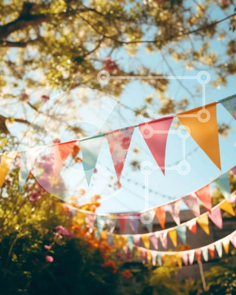 Intra Συλλεκτικό Ξύλινο Παζλ Plywood 4mm – Πολύχρωμες σημαίες και φωτάκια σε εξωτερικό χώρο Σε Ξύλινο Κουτί – Διαστάσεις Puzzle: 10×10 cm – 25 κομμάτια