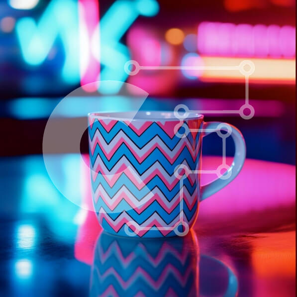 Intra Συλλεκτικό Ξύλινο Παζλ Plywood 4mm – Πολύχρωμη κούπα ζιγκ-ζαγκ με νέον φόντο Σε Ξύλινο Κουτί – Διαστάσεις: 10×10 cm – 25 κομμάτια