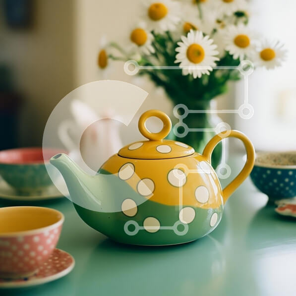Intra Συλλεκτικό Ξύλινο Παζλ Plywood 4mm – Πολύχρωμη τσαγιέρα και floral σύνθεση στο τραπέζι Σε Ξύλινο Κουτί – Διαστάσεις: 10×10 cm – 25 κομμάτια