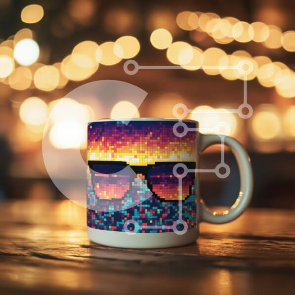 Intra Συλλεκτικό Ξύλινο Παζλ Plywood 4mm – Πολύχρωμη κούπα με pixel σε ξύλινο τραπέζι Σε Ξύλινο Κουτί – Διαστάσεις: 10×10 cm – 25 κομμάτια
