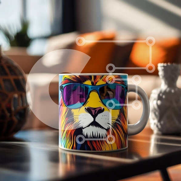 Intra Συλλεκτικό Ξύλινο Παζλ Plywood 4mm – Πολύχρωμη κούπα λιονταριού με γυαλιά ηλίου Σε Ξύλινο Κουτί – Διαστάσεις: 10×10 cm – 25 κομμάτια